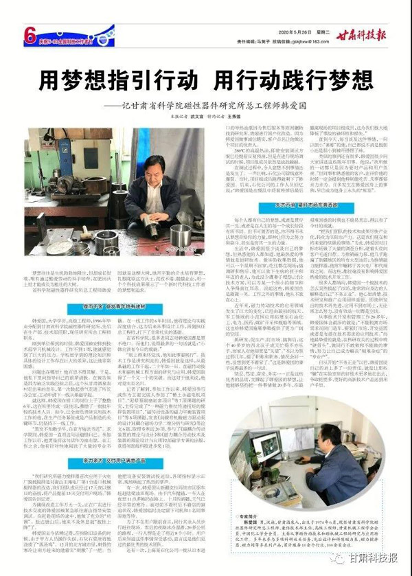 【致敬新時代 禮贊科學(xué)家◎科技之光】用夢想指引行動 用行動踐行夢想——記甘肅省科學(xué)院磁性器件研究所總工程師韓愛國